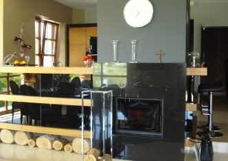 Nowoczesny dom z ciekawie zaprojektowanym wnętrzem. Dom z dużymi przeszkleniami w salonie oraz w sypialniach. Na parterze : hol wejściowy z dużym lustrem. szafą na ubrania .Po lewej stronie od wejścia gabinet, toaleta dla gości, idąc dalej kuchnia z wyspą pośrodku. ...
